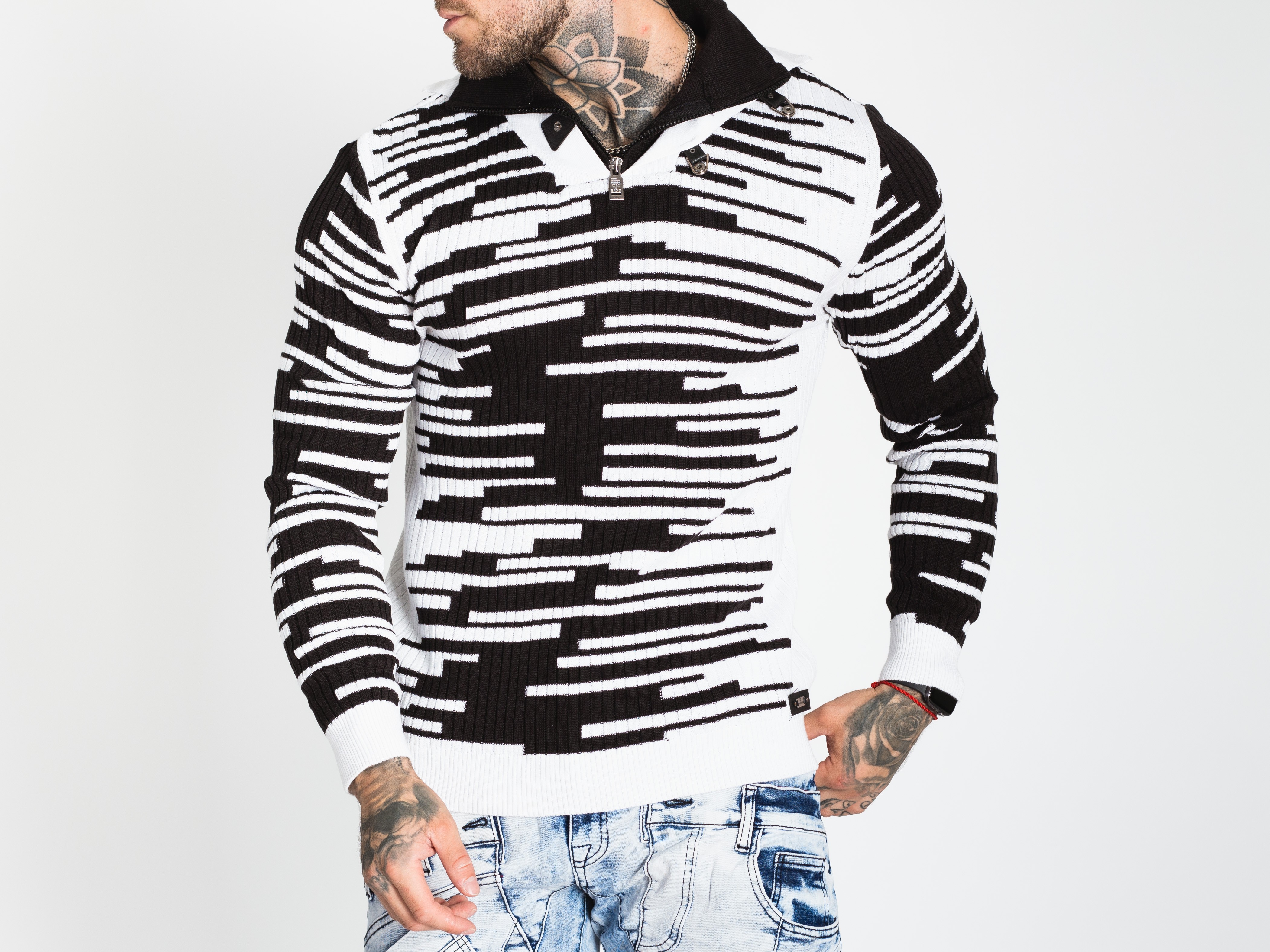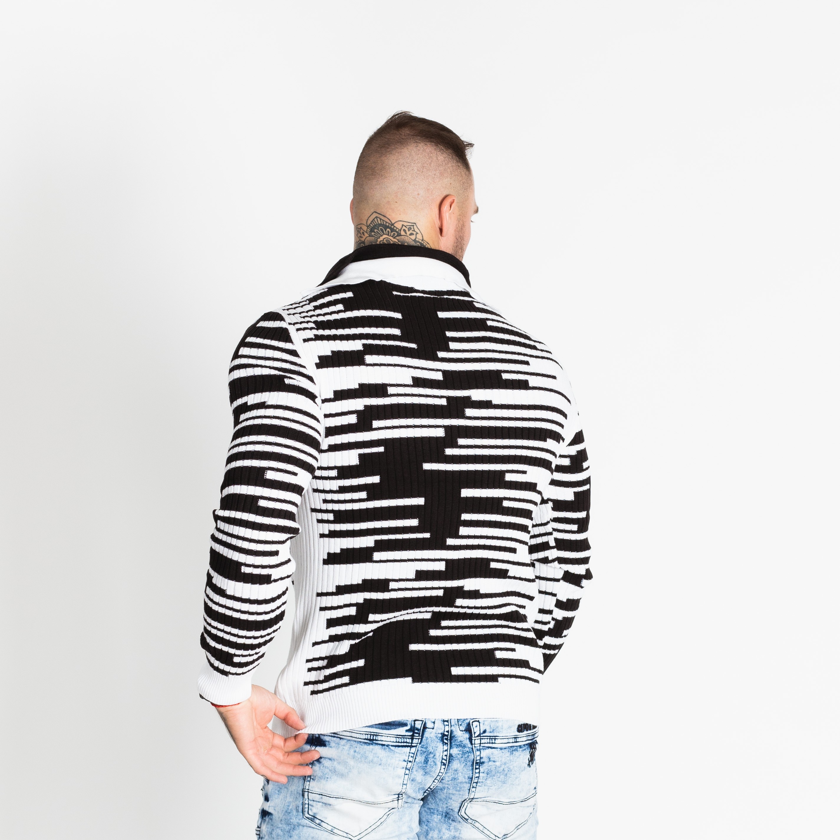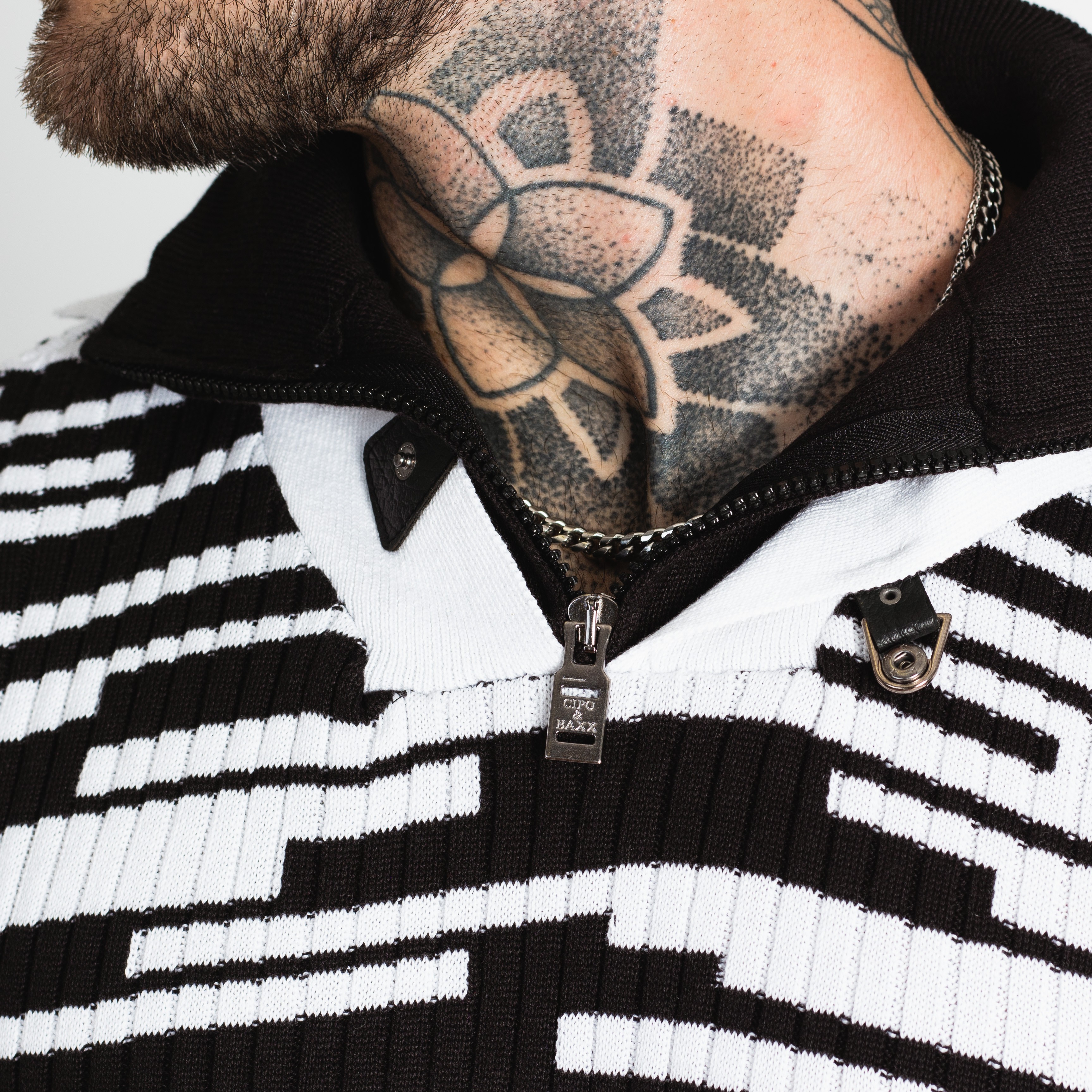 Pánský černobílý svetr CIPO&BAXX je ten pravý kousek pro vás, pokud na sebe chcete upoutat pozornost. Svetr má u krku zapínání na zip.