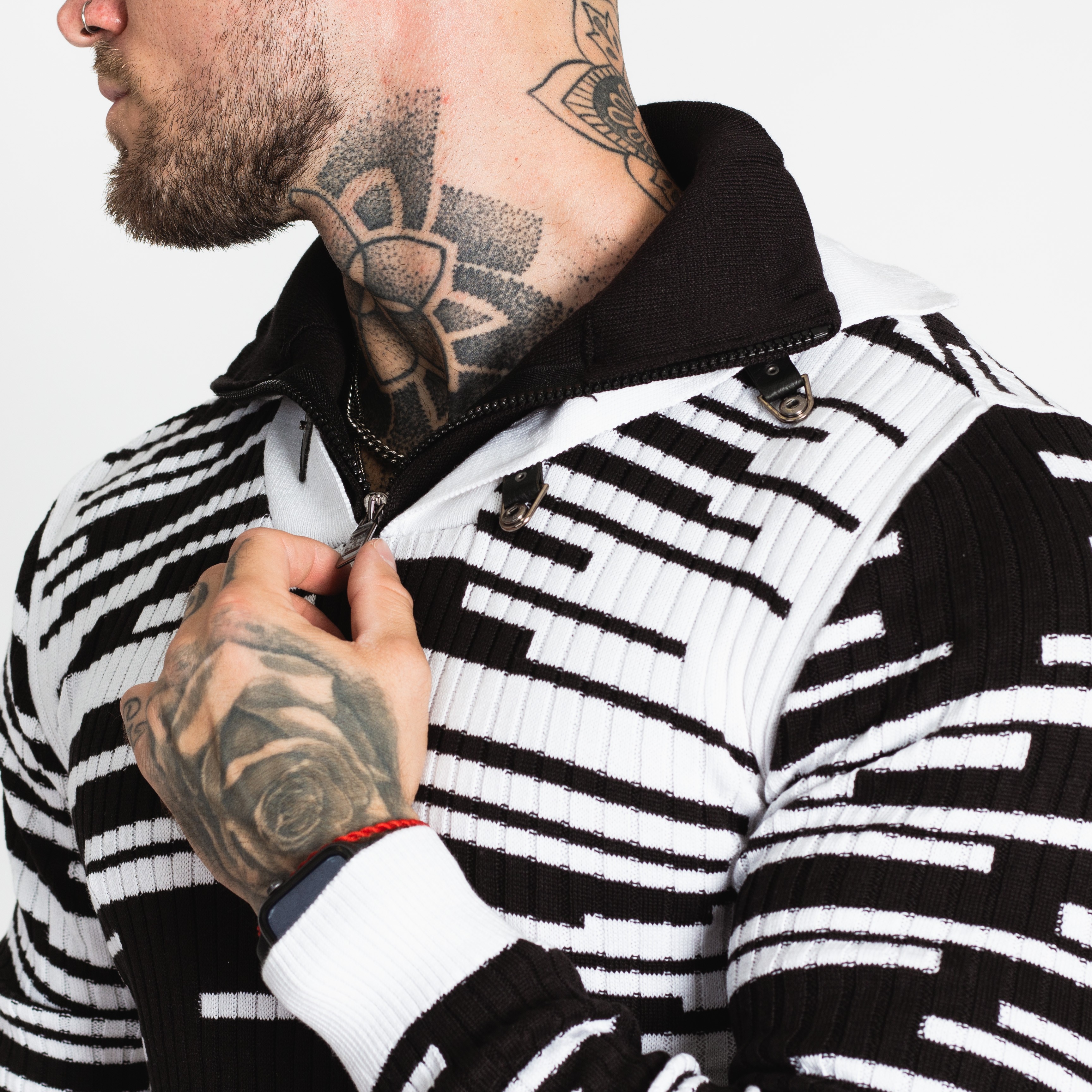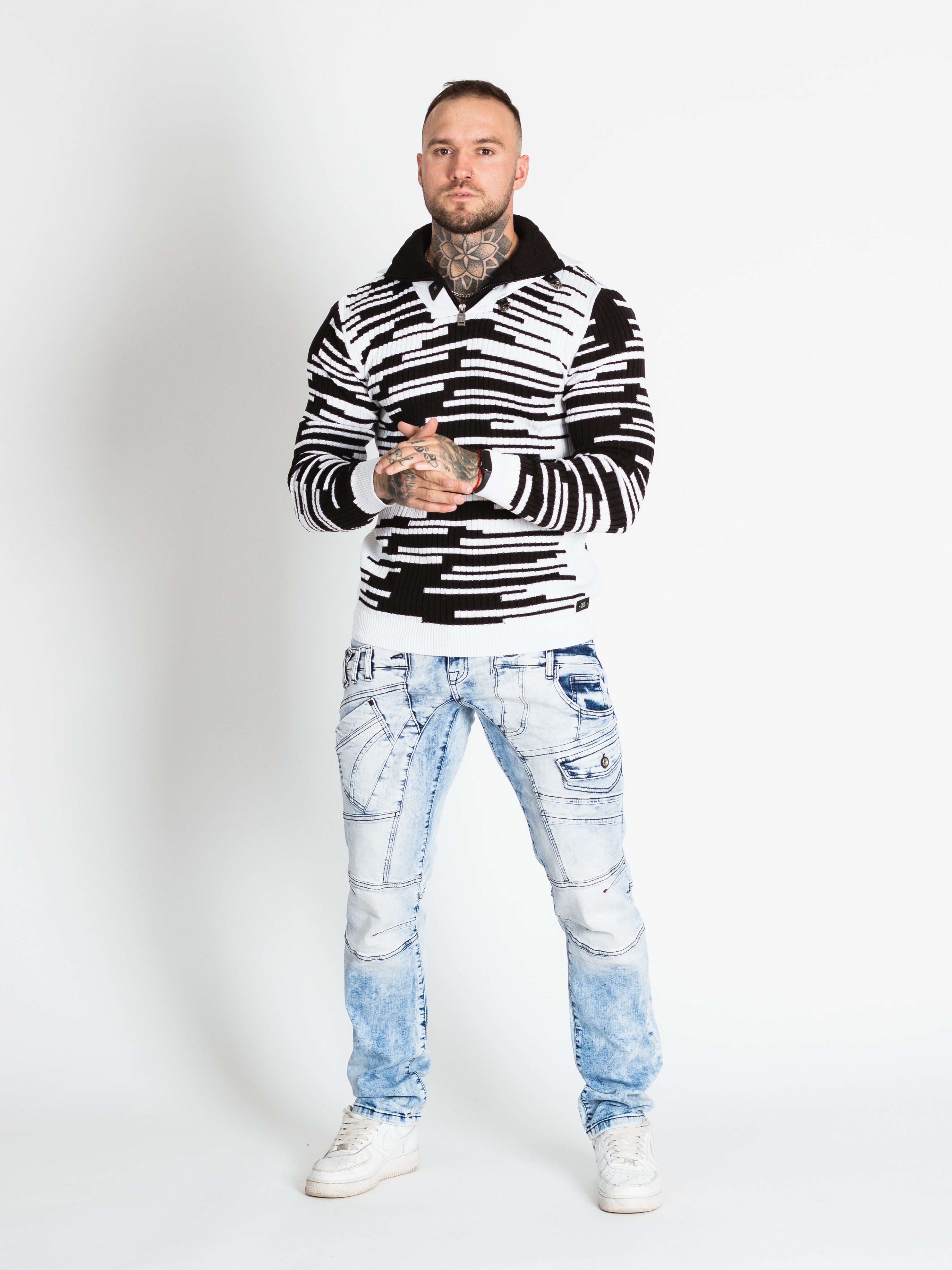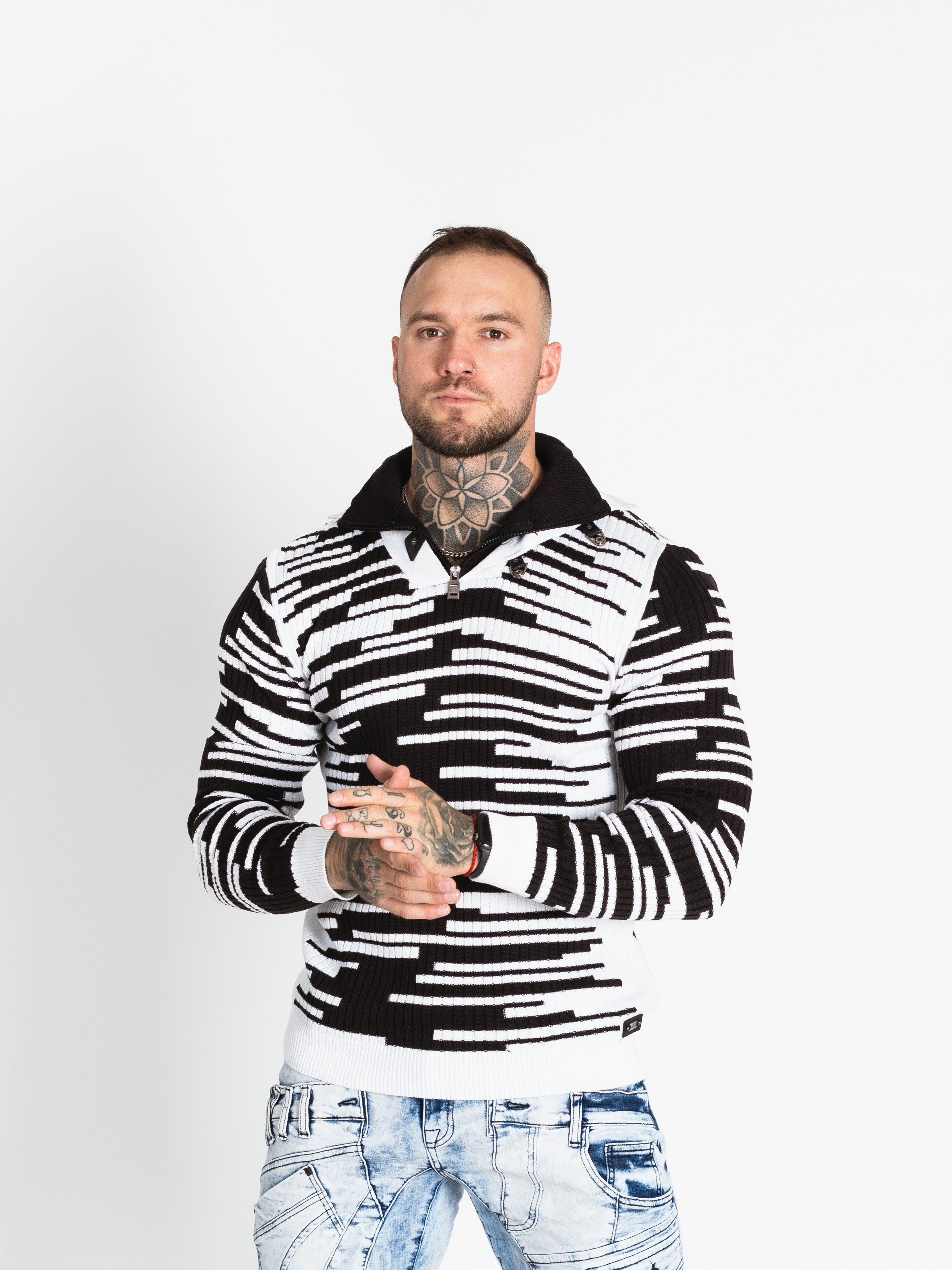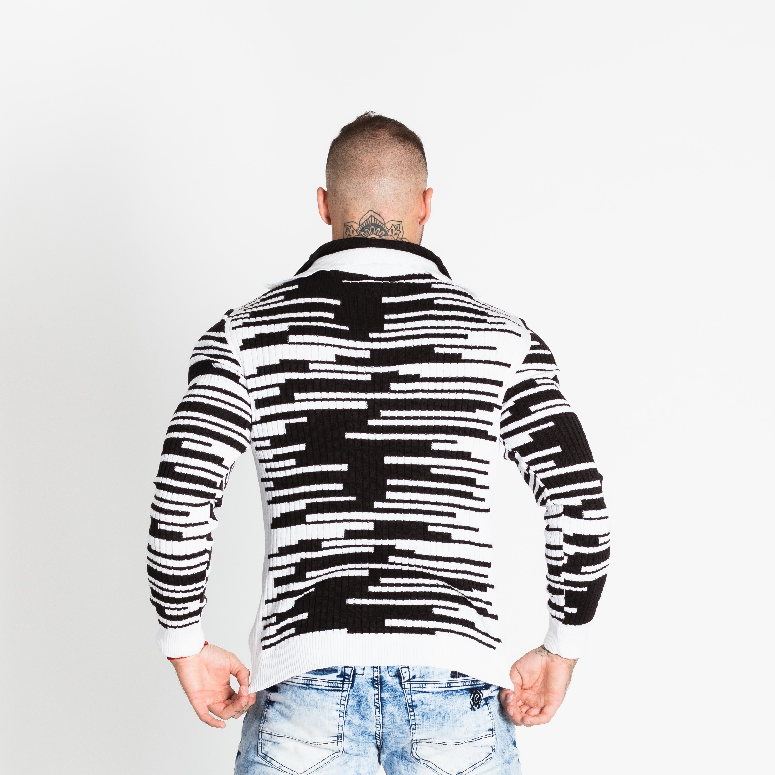 Pánský černobílý svetr CIPO&BAXX je ten pravý kousek pro vás, pokud na sebe chcete upoutat pozornost. Svetr má u krku zapínání na zip.