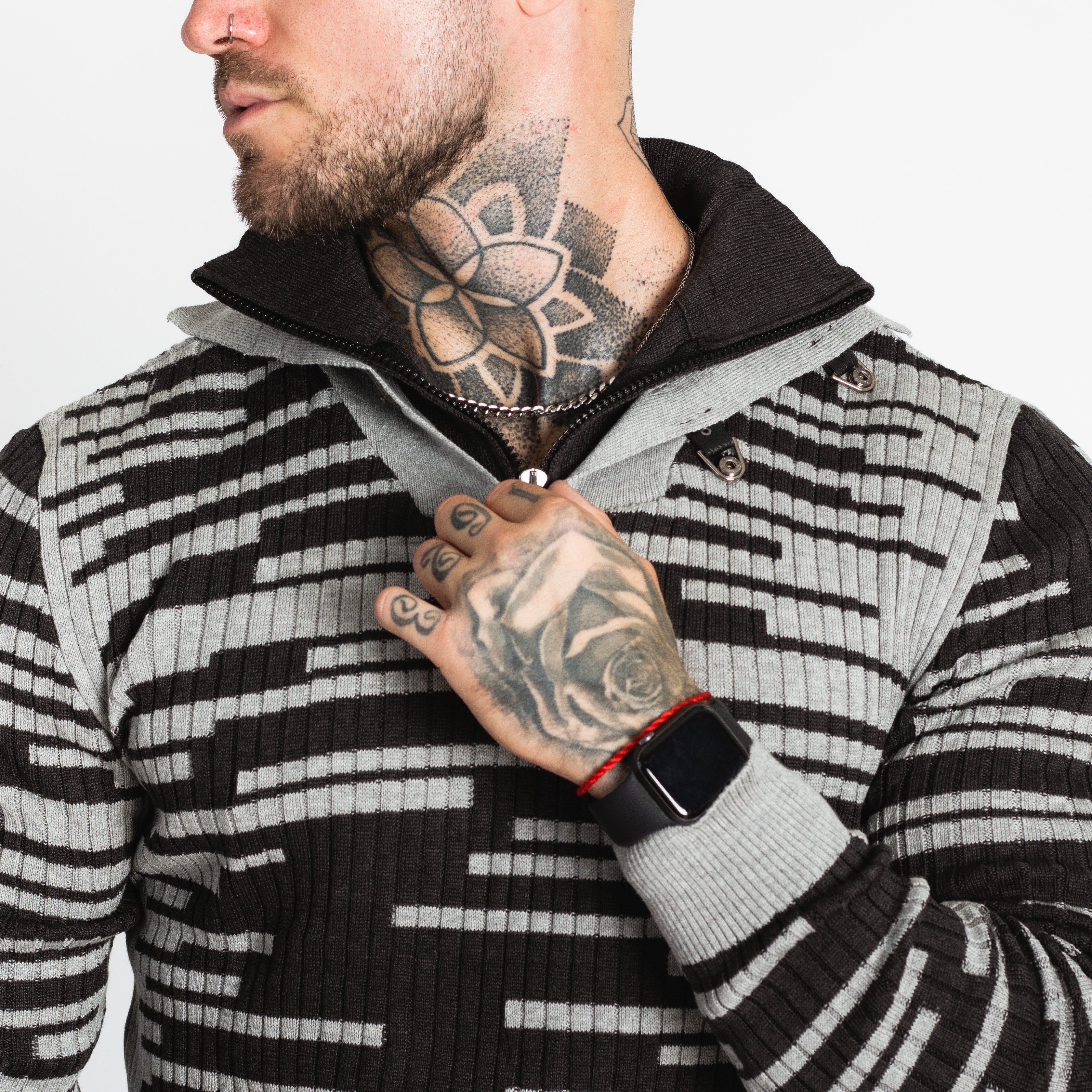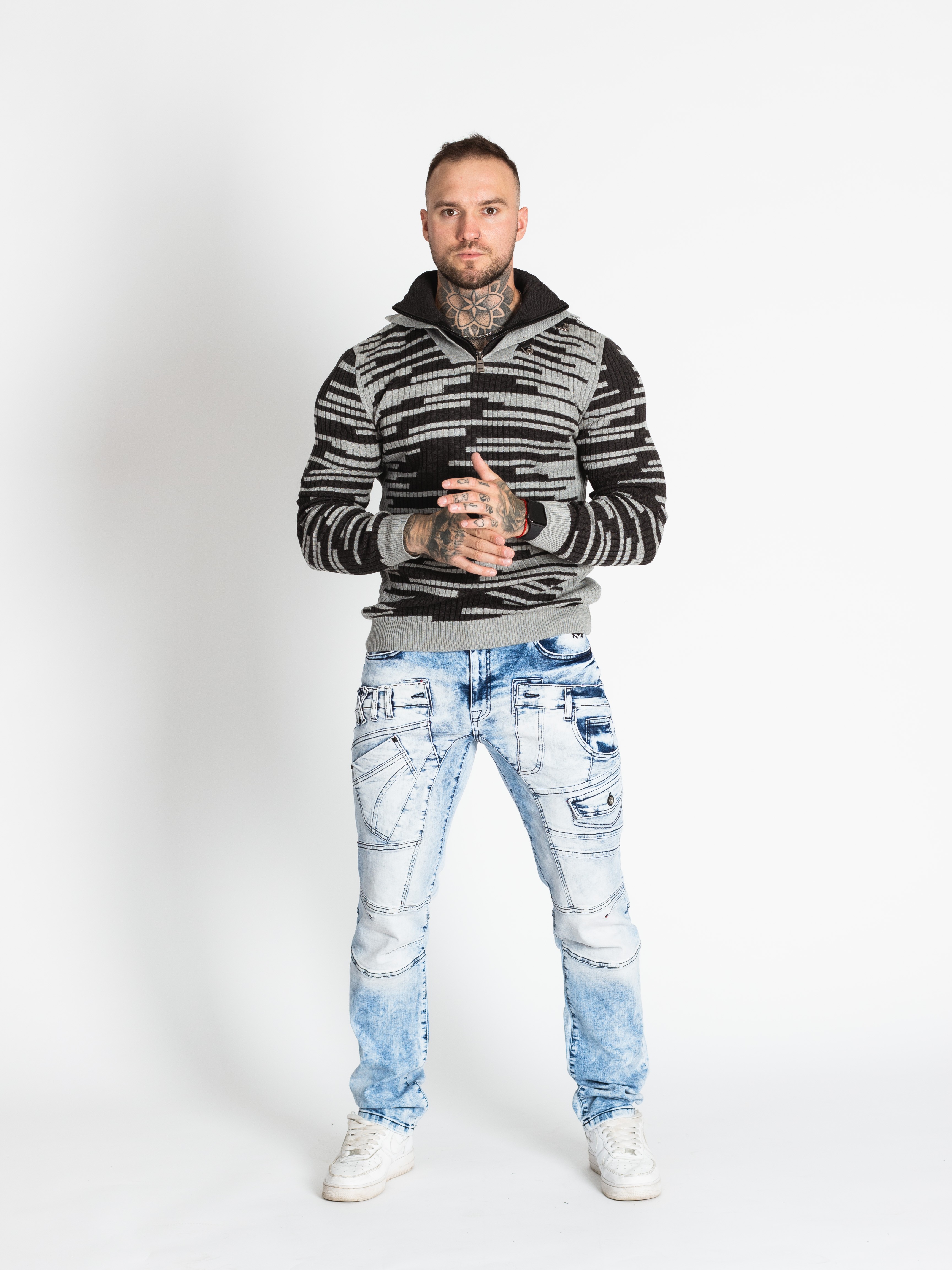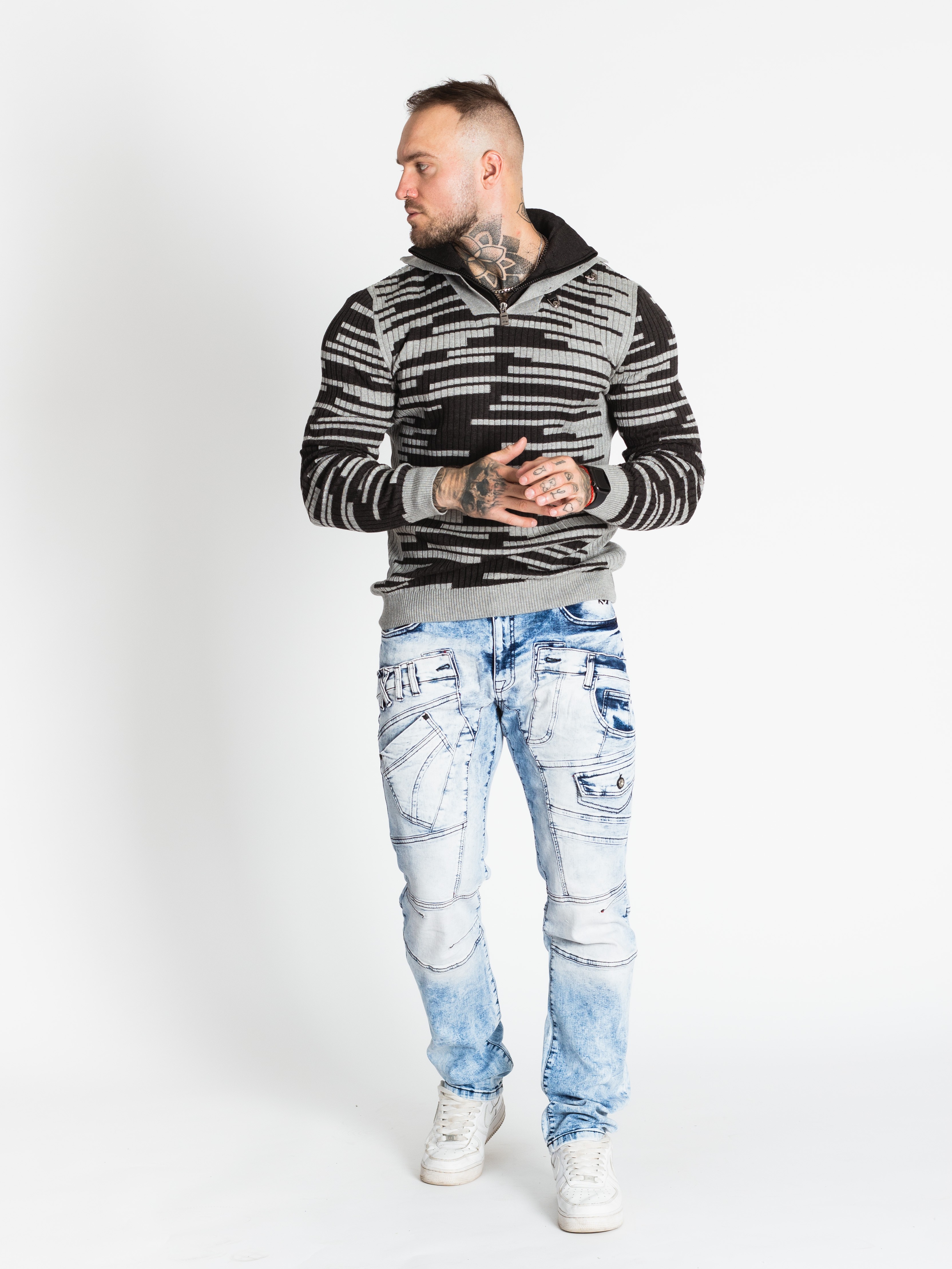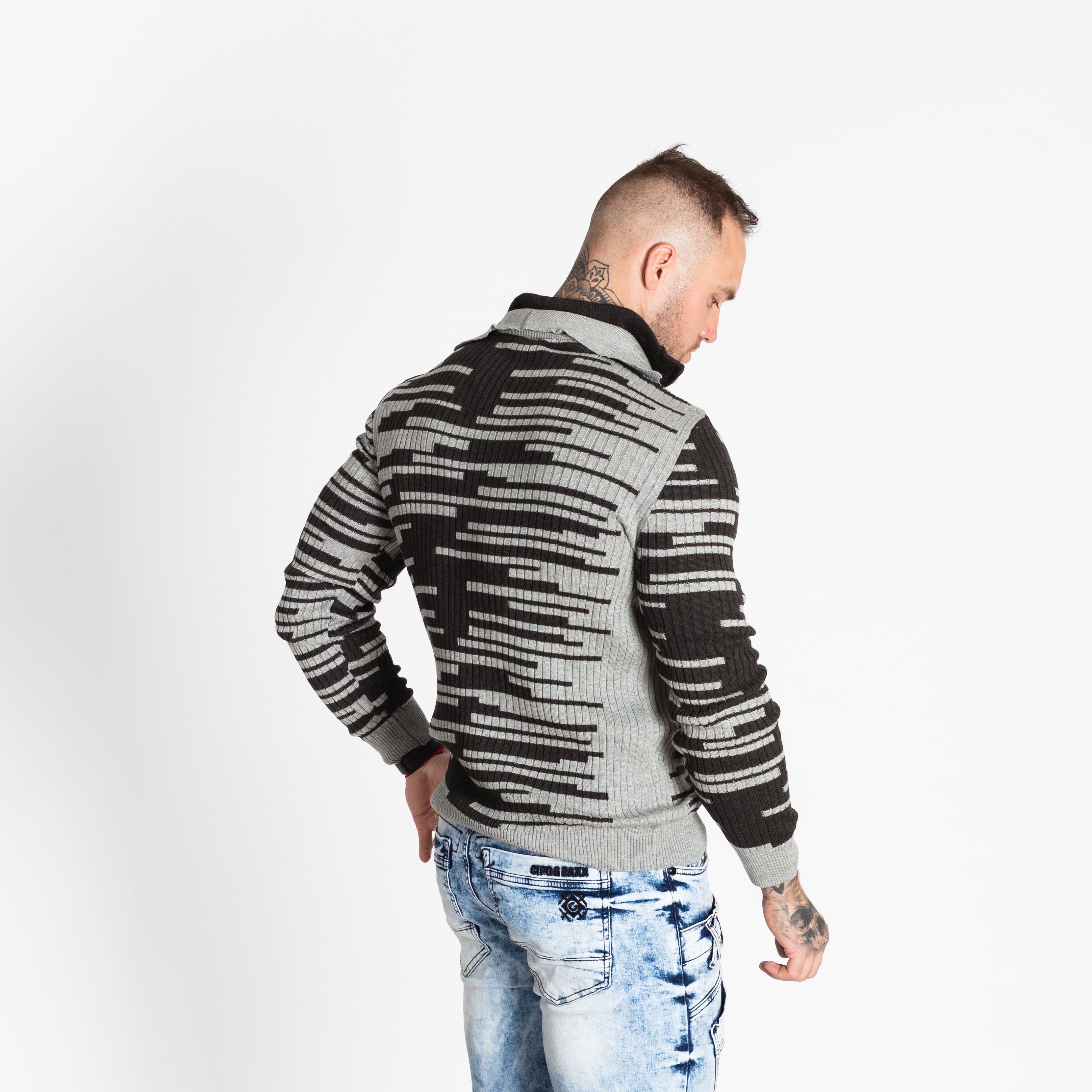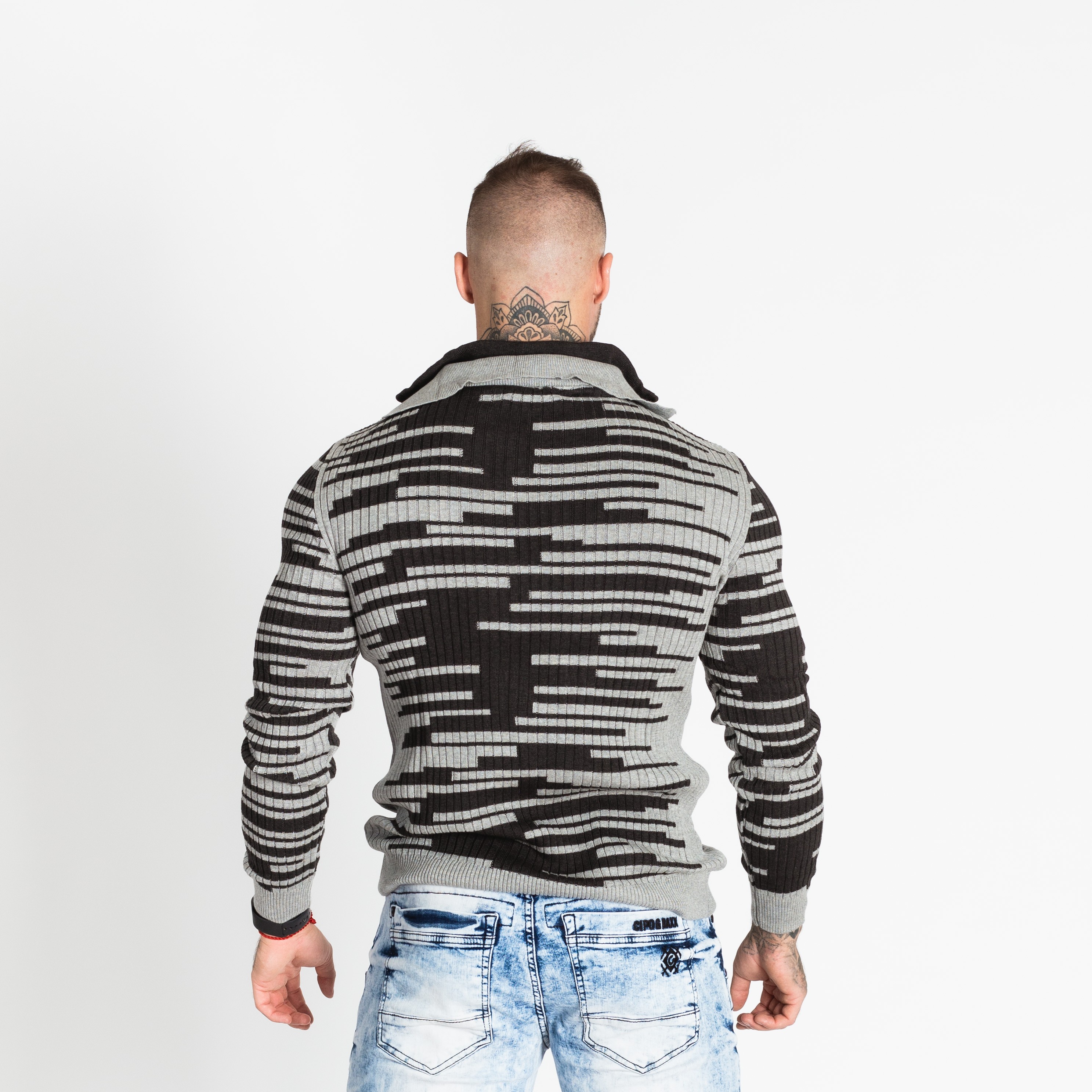 Pánský šedočerný svetr CIPO&BAXX je ten pravý kousek pro vás, pokud na sebe chcete upoutat pozornost. Svetr má u krku zapínání na zip.